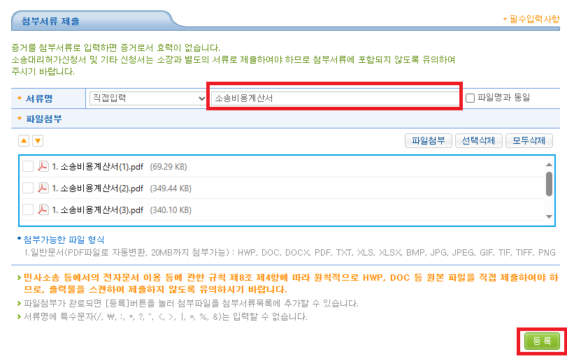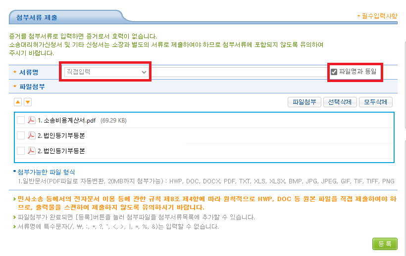 λ³μ§κ° μλ κ²½μ° HWP, DOC, DOCX, PDF, TXT, BMP, JPG, JPEG, GIF, TIF, TIFF, PNG (PDFνμΌλ‘ μλλ³ν, 20MBκΉμ§ 첨λΆκ°λ₯)μ νμμΌλ‘ νμΌ μ²¨λΆν μ μμΌλ©°, 첨λΆν κ²½μ° μμ₯μ 맨 λ§μ§λ§ νμ΄μ§μ λΆκ² λ©λλ€.