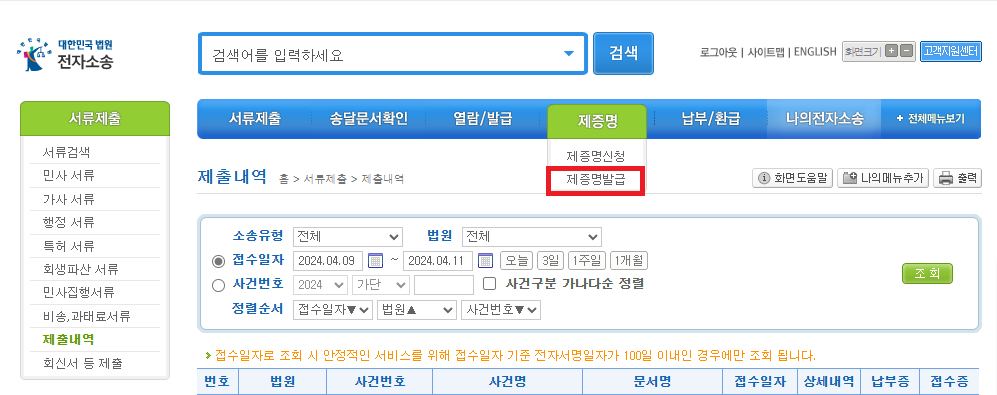 μ¬κ±΄λͺ κ²μμ λλ₯΄λ©΄ μ§μ μ¬κ±΄λͺ μ κ²μν μ μκ³ ,